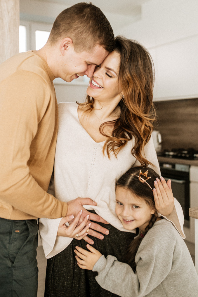 Su vyru kartu apsikabinę verkėmė iš laimės, nes antrasis vaikelis tikrai ilgai planuotas ir lauktas. Dukrytė kelis kartus perklausė: ar mes rimtai? O tada suraukusi antakius pasiteiravo manęs, ar žinau, kiek daug kainuoja toks didelis vežimas! (juokiasi) Buvo daug juoko. Ji labai džiaugiasi, vis prašo telefono programėlėje parodyti, kokio dydžio jau yra vaikelis, vis klausia, kodėl taip ilgai reikia laukti.