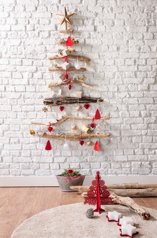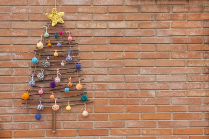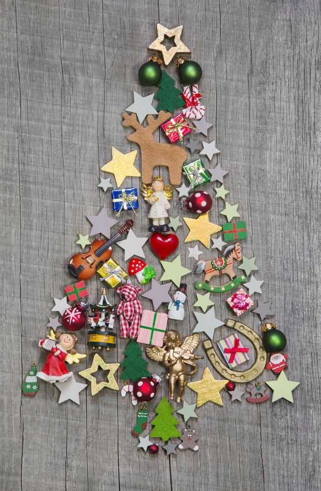 * Kalėdų eglutę kuo puikiausiai galima sukurti iš įvairių kalėdinių simbolių - žvaigždučių, eglučių, elniukų, angeliukų, dovanėlių ir visko, ką turite. Tik pritvirtinkite šiuos aksesuarus ant trapecijos formos pagrindo, pavyzdžiui, kartono, o paskui kabinkite ant sienos.