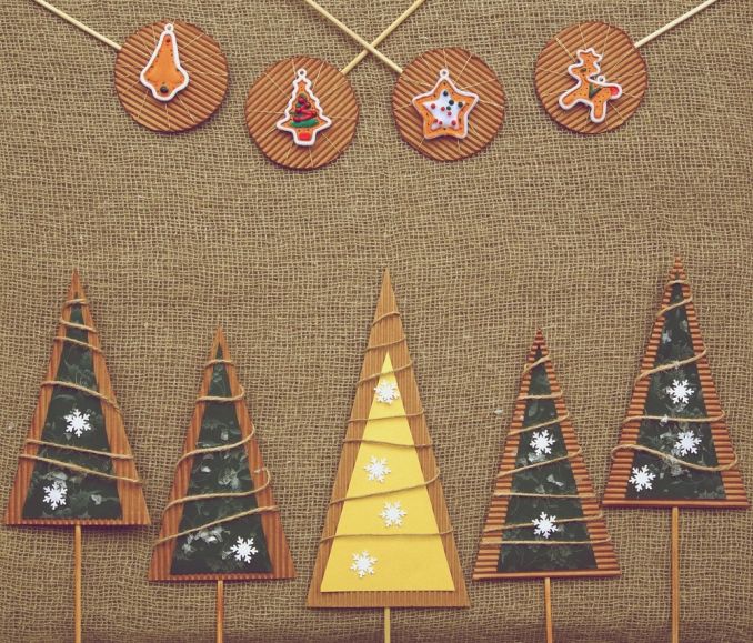 * Argi ne puikios dekoracijos? Joms reikės gofruoto kartono, pagaliuko, spalvoto popieriaus, špagato, snaigių ir klijų.