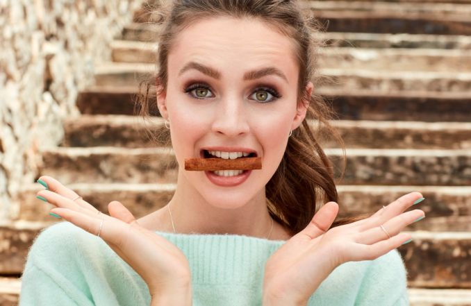 CINAMONAS – salsvas, pikantiškas prieskonis, ne tik suteikiantis šilumos, džiugesio, bet ir gerinantis kraujotaką, didinantis energijos lygį (net ir odos). Įberkite cinamono į skrudintus dribsnius ir mėgaukitės skaniais ir sveikais pusryčiais.