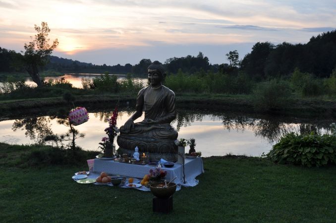 Beje, šią vietą vieni pirmųjų išbandė septyni Tibeto vienuoliai, kai neseniai buvo atvykę į Vilnių ir čia buvo apsistoję. Kaip tik kitą dieną Čiobiškio sodyboje (jos pavadinimas Zen Miškas) vyko Budos akių atvėrimo ceremonija. Tai ceremonija, kurios metu šventinama Budos skulptūra ir po jos skulptūra jau nėra vien tik žmogaus sukurtas metalinis meno kūrinys. Tai vieta praktikai. Taig Tibeto vienuoliai sudalyvavo ceremonijoje, kuriai vadovavo vienuolė moteris, visai kitos pakraipos budistė. Tai yra labai neįprasta situacija vienuolių gyvenime ir praktikoje ir tarsi patvirtina: ši vieta skirta vienyti visus.
