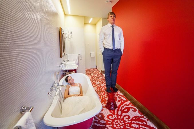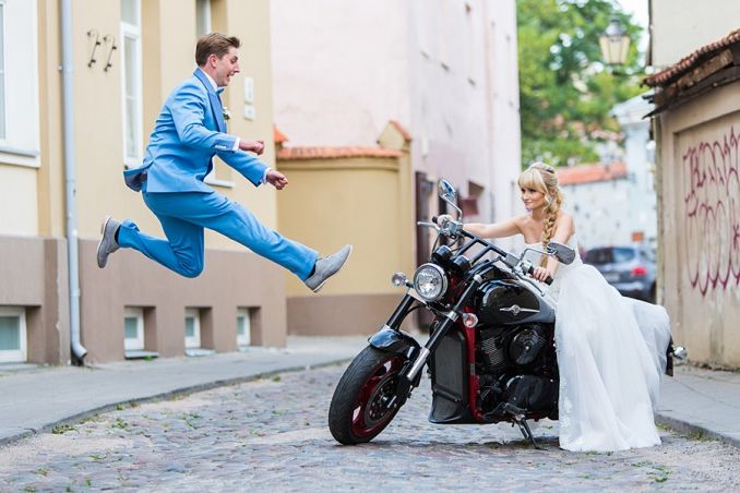 „Manęs kartais klausia, ar visos mano nuotraukos yra tokios nestandartinės ir nutrūktgalviškos. Tikrai ne, nes visa vestuvių diena negali būti vien šokinėjimas namų stogais ar čiuožimas nuo kalno per žolę su snieglente. Yra laikas ir vieta labiau patrakusioms idėjoms, ir žinoma, yra laikas romantiškoms nuotraukoms.
