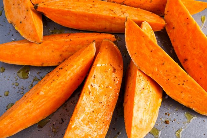 Valgomieji batatai, arba saldžiosios bulvės, turi daug beta-karotino, kuris naudingas moterims, turinčioms riebią, blizgią odą. Taip pat, daržovėse gausu vitamino A ir vitamino C, tai lemia odą skaistinančias savybes.