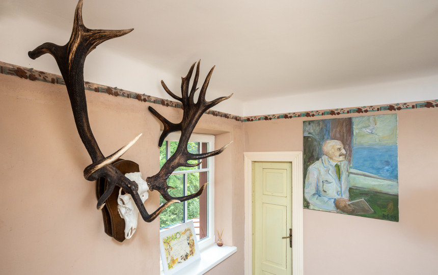 Įspūdinguosius ragus dar kurį laiką bus galima pamatyti unikaliame muziejuje pakaunėje – šiuo metu jie kaba virš autentiškos gamtininko Tado Ivanausko lovos.