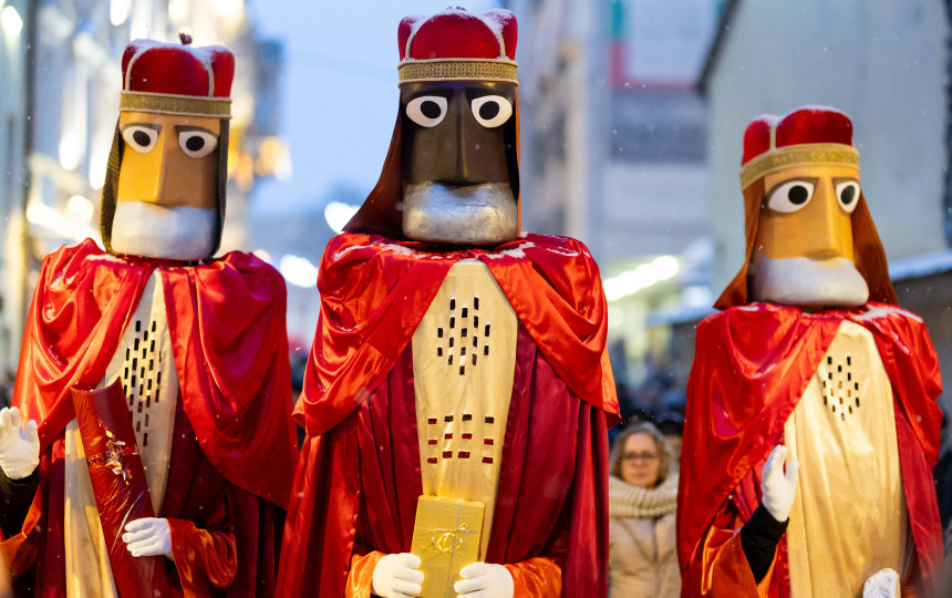 Trijų karalių eisena pajudės nuo Aušros vartų ir drieksis Vilniaus senamiesčio gatvėmis iki Katedros aikštės, kur vyks šventės kulminacija. Čia, prie Prakartėlės, skambės Artūro Noviko džiazo mokyklos dainininkų koncertas, balsų darna ir muzika išlydėsiantis Kalėdas iki kitų metų.