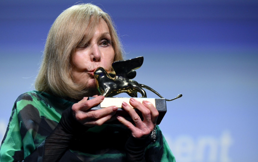 92-ejų buvusiai kino žvaigždei pirmadienį Kino rūmuose apdovanojimą įteikė garsus režisierius Guillermo del Toro. Publika plojo atsistojusi.