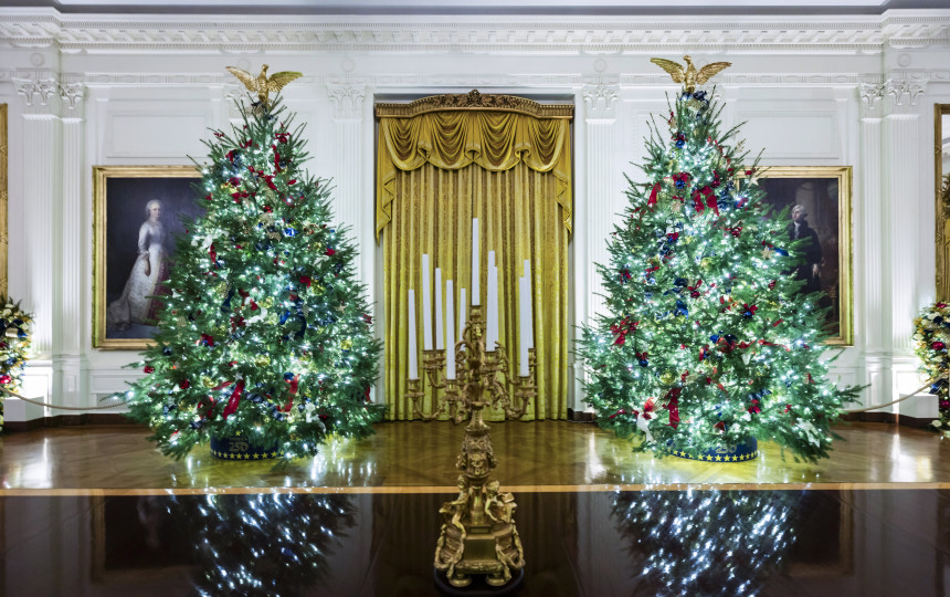 Buvusi pirmoji ponia, tuomečio prezidento Joe Bideno žmona Jill Biden, anot pranešimų pernai Baltuosius rūmus dekoravo net daugiau kaip 80 eglaičių.