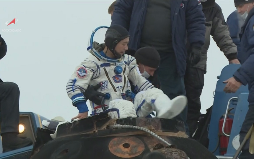 Interneto mados magnatas Yusaku Maezawa ir jo padėjėjas Yozo Hirano kartu su Rusijos kosmonautu Aleksandru Misurkinu nusileido parašiutu į Kazachstano stepę maždaug numatytu laiku pirmadienį 03:13 GMT. Filmuotoje medžiagoje iš nusileidimo vietos, esančios maždaug už 150 kilometrų į pietryčius nuo centrinio Kazachstano Žezkazgano miesto, trijulė šypsojosi, kai šaltu ūkanotu oru padedami lipo iš „Sojuz“ nusileidimo modulio ir persėdo į evakuacijos mašinas.