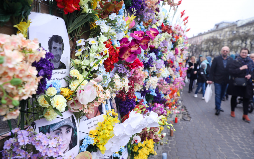 Monumente Rusijos agresijos Ukrainoje aukoms yra kelios dešimtys žuvusiųjų nuotraukų. Nuo Rusijos pradėto karo Ukrainoje pradžios šalyje žuvo tūkstančiai civilių žmonių, Jungtinių Tautų duomenimis, jų skaičius siekia mažiausiai 2,2 tūkstančio.