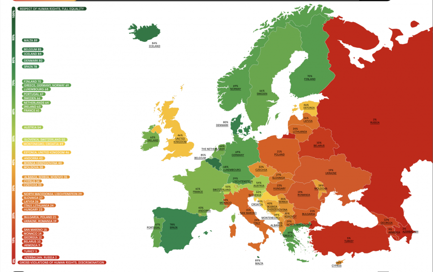 Lietuvos rezultatas Vaivorykštės žemėlapyje atskleidžia, kad esminiai žmogaus teisių standartai vis dar nėra įgyvendinti. Nepaisant simbolinių pergalių, teisės aktų reforma vyksta vangiai, o neapykantos nusikaltimai dažnai lieka neužfiksuoti.