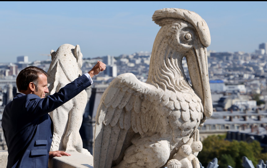 E. Macronui buvo suteikta garbė būti pirmuoju ekskursijos po atrestauruotus bokštus dalyviu, iš arti apžiūrėti garsiąsias katedros chimeras – groteskiškas mitinių žvėrių skulptūras, puošiančias išorines sienas.