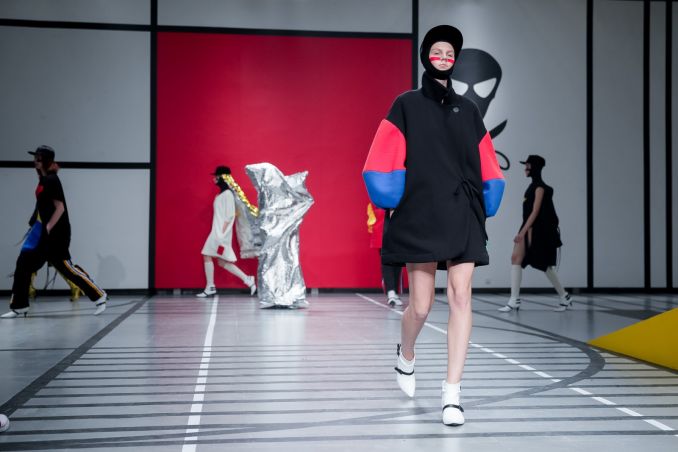 Dizainerės kolekcijoje vyravo išdidinti (oversize) siluetai, kamufliažinės spalvos, militaristinės detalės, sportiniai audiniai, pasak dizainerės tai – ateities uniforma. Kolekcijoje derinti šiltojo ir šaltojo sezono atributai: Senovės Romos laikus primenanti, vasariška avalynė, marškinėliai trumpomis rankovėmis, pūkinės striukės. Dramatiškai mirksinčiomis šviesomis prasidėjęs pasirodymas nustebino modeliais – jie ant podiumo pasirodė tamsiu audiniu uždengtais veidais.