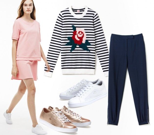2016 m. pavasario / vasaros kolekcijoje vyrauja ne tik metai iš metų LACOSTE būdingi stilistiniai sprendimai, bet ir naujos kryptys. Dryžiai derinami su gėlėmis, sportinėse kelnėse atsiranda perregimo audinio detalės, spalvinė gama praplėsta pasteliniais atspalviais. Kolekcijoje panaudotas R. Lacoste gimtinės, Prancūzijos, vėliavą atkartojantis spalvinis derinys - mėlyna, balta raudona - yra viena ryškiausių šio pavasario tendencijų. Aksesuarų naujovėmis galima vadinti metalizuotos odos efektą ir sutraukiamas krepšelių formos rankines, kurios idealiai tiks miesto merginoms. LACOSTE sujungia madingus elementus, aukščiausią kokybę ir komfortą, visa tai idealiai tinka mėgstantiems stilingą laisvalaikio ir profesionalią sportinę aprangą.