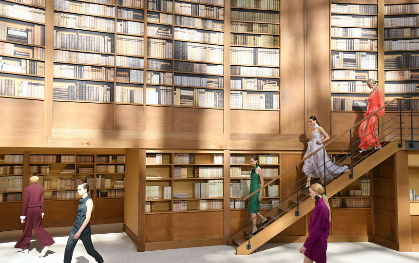 Šį kartą V. Viard nusprendė sekti K. Lagerfeldo pėdomis ir „Grand Palais” paversti milžiniška senovinio stiliaus biblioteka su keliolikos metrų aukščio lentynomis, pripildytomis daugiau nei 300 tūkst. knygų. Trijų aukštų bibliotekoje stovėjo klasikiniai laiptai, kuriais žengė aukštosios mados suknelėmis vilkintys modeliai.