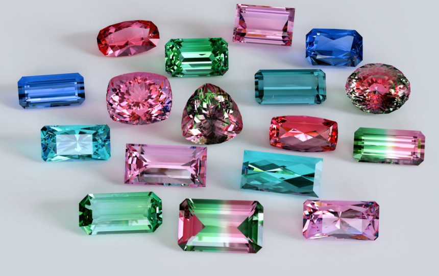 Labiausiai pastebimi juvelyrikoje yra dar vadinami arbūziniai turmalinai – taip jie vadinami dėl spalvų kombinacijos, raudonos spalvos, kuri, atsiradus blyškiai gelsvai, pamažu pereina į žalią spalvą. Tokie turmalinai labiausiai taikomi čakroms valyti ir bendrai harmonijai palaikyti. Juodas turmalinas naikina stresą, nervinimąsi, negatyvumą, nepasitikėjimą ir nepasitenkinimą. Gryną žalią spalvą renkasi tie, kurie nori atsikratyti pavydo ir sustiprinti ištvermę, rudą – norintys atsikratyti žalingų įpročių bei ieškantys išsilaisvinimo iš savo silpnybių ir praeities klaidų asmenys, mėlyna traukia tuos, kurie siekia dvasinio augimo bei stiprinti intuiciją, o raudona tiks laukiantiems įkvėpimo, kūrybiškumo ir vaisingumo žmonėms.
