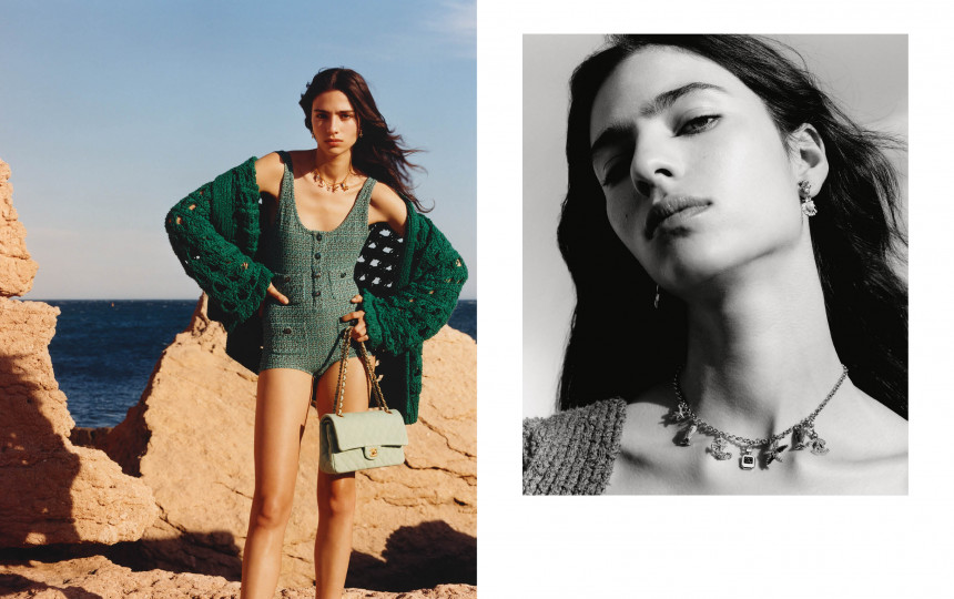 Juoda ir balta čia yra daugiau nei tik spalvos – jos tampa kalba. Vieną akimirką klasikinė CHANEL estetika virsta nardymo kostiumu, derindama paveldą ir nuotykių atspalvį. Loli Bahia stovi pakrantėje, įkūnydama saulę, vėją ir jūrą – tai moderni CHANEL moteris, nebijanti gylio.