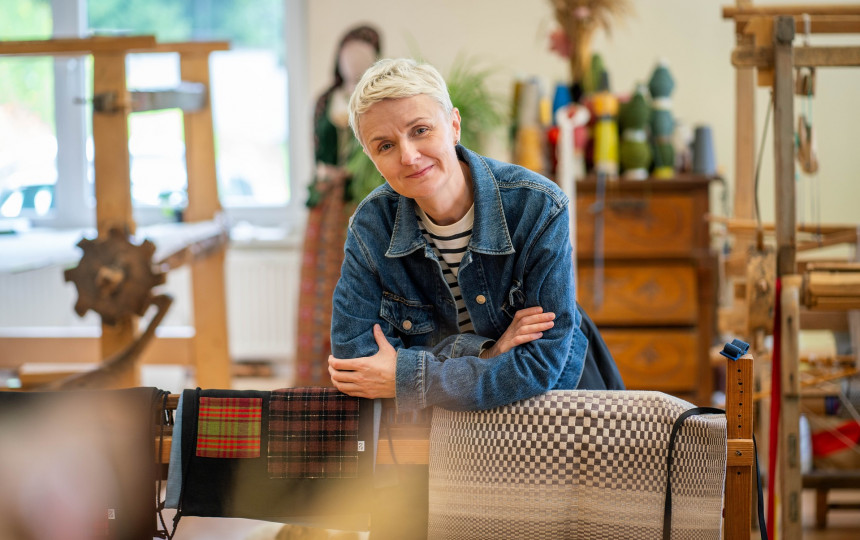 Prisimenu save pirmame kurse – reikėjo austi, o man tai buvo siaubas, nes mano mintys lakstė visur, todėl taip ir nepavyko įvaldyti šio amato. Todėl dabar itin džiaugiuosi galimybe sugrįžti prie audimo – tik jau kitaip, be spaudimo, tiesiog stebint, kaip tai daro tikros savo amato meistrės. Man žymiai ramiau ir prasmingiau būti šalia, kai matau, kaip LNM Tekstilės atkūrimo dirbtuvių audėjų – Linos Ausiejienės, Ramutės Radiūnės, Eglės Raškovskienės, Alinos Žemienės, Daivos Onos Šopienės – rankomis gimsta etnomados aksesuarai. Dar dera paminėti ir LNM tekstilininką Mantą Televičių, kuriam ir kilo pirminė idėja iš juostų pagaminti riešines. Jos davė pradžią etnomados suvenyrų linijai. Tekstilės dirbtuvėse taip pat gaminamos Etnografijos ir antropologijos skyriaus rinkiniuose saugomų tautinio kostiumo dalių rekonstrukcijos. Čia kiekvienas judesys liudija ilgametę patirtį, jautrumą medžiagai ir pagarbą tradicijai. Tai – tikras įkvėpimas.