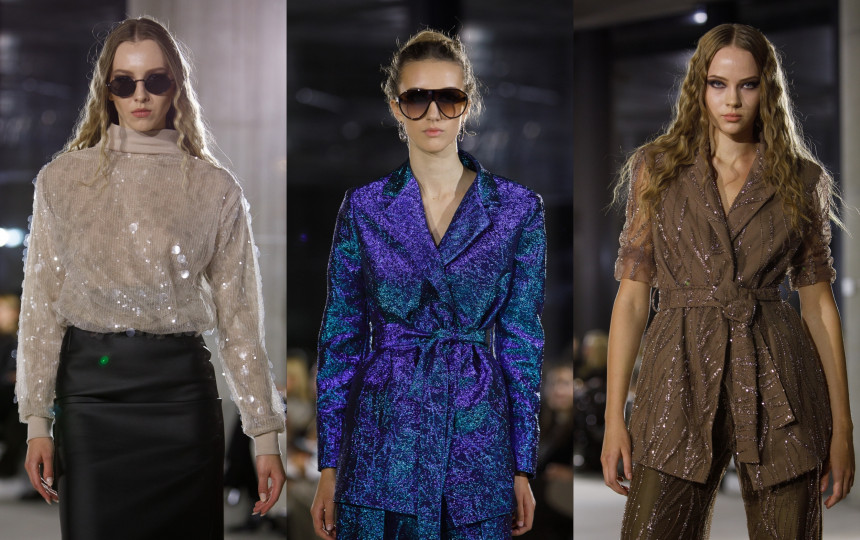 Metalizuoti paviršiai pamažu užleidžia vietą įstabiai siuvinėtiems audiniams, žėrintiems tarsi brangakmeniai. Kokteiliniai švarkai nuo... iki... dekoruoti blizgiais akmenėliais, puošnumu jie galėtų varžytis net su scenos primadonų kostiumais. Tačiau mados ženklas „Studio MX“ siūlo išlaikyti harmoniją ir prie gausiai siuvinėto ar blizgaus rūbo pritaikyti subtilesnį. Naujausioje kolekcijoje blizgiais diskeliais siuvinėta palaidinė derinta su elegantišku juodu midi ilgio sijonu, o sidabro žvyneliais spindintis vakarinis švarkas – su perregimomis juodomis kelnėmis.