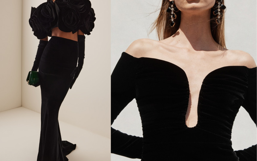 Aksominė vakaro apranga visuomet atrodys elegantiškai, prašmatniai ir puikiai tiks tiek ypatingoms progoms, tiek žiemos šventėms.