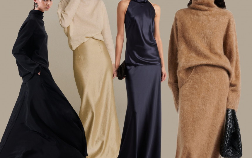 Madingi vakariniai satino ansambliai, sudaryti iš tos pačios spalvos ilgo sijono ir palaidinės arba satino švarkelio. Tai elegantiškas pasirinkimas ypatingai progai ir alternatyva vakarinei suknelei. Tokį ansamblį galėsite vilkėti kaip vientisą derinį arba sijoną ir palaidinę derinti su skirtingais drabužiais, sukurdama dar daugiau įvairių įvaizdžių.