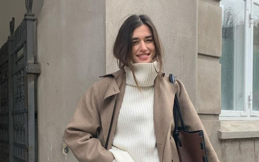 Megztinis su aukšta apykakle ir midi ilgio sijonas – dažnas 2026-ųjų žiemos derinys, leidžiantis suderinti praktiškumą ir tvarkingą siluetą. Toks derinys tinka tiek kasdieniams reikalams, tiek ramesniems vakaro planams. Šviesių atspalvių megztinis ir lygios tekstūros midi sijonas sukuria subalansuotą, lengvai pritaikomą kasdienį įvaizdį.