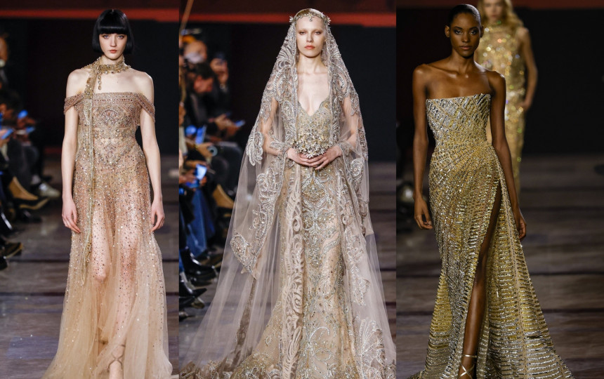 Mados namai „Elie Saab“ pristatė naujausią 2026 m. pavasario ir vasaros aukštosios mados kolekciją, tviskančią auksu ir alsuojančią laisvos moters dvasia.