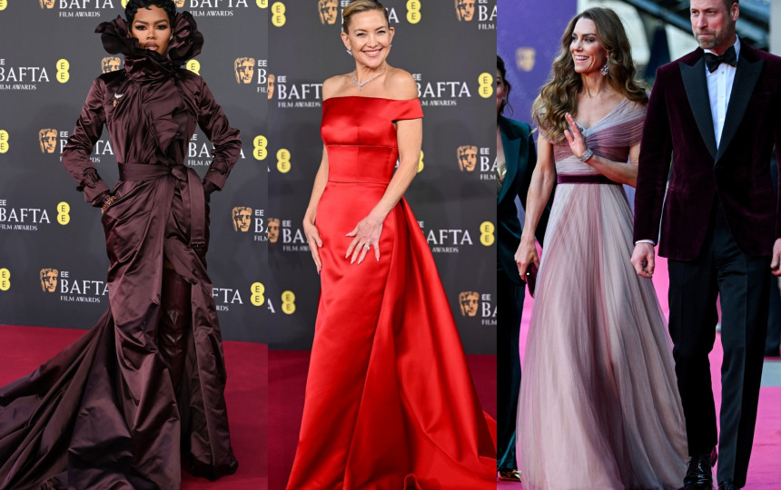 Velso princesė Catherine BAFTA apdovanojimuose dalyvavo kartu su princu Williamu. Vakarui ji pasirinko romantišką mados namų „Gucci“ suknelę, vilnijusią lengvomis rausvų atspalvių audinio juostomis. Šią suknelę princesė jau yra vilkėjusi anksčiau – 2019 metais. Įvaizdį Catherine papildė deimantų papuošalais, spindinčiais šampano atspalvio aukštakulniais ir burgundiško vyno raudonio „Prada“ delnine.