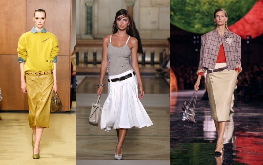 Tuo tarpu Chanel pristatė midi ilgio sijonus iš tvido, vilkimus žemiau natūralaus liemens. Jie buvo papildyti diržais ir derinami su sluoksniuotais drabužiais, sukuriant įdomų silueto žaismą.