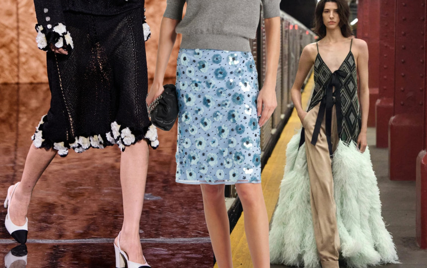 Neįprastų paviršių drabužius šiltojo sezono kolekcijose pristatė mados namai „Chanel“, „Balenciaga“, „Alaia“, „Bottega Veneta“, „Khaite“ ir kiti. Tarp madingiausių pasirinkimų –tekstūriški puošnūs sijonai, pasiūti iš galybės audinio skiautelių, dekoruoti plunksnomis, žibučiais, pašyto audinio krašteliais ir kitomis tekstūriškumą išryškinančiomis detalėmis. Toks sijonas puikiai tiks pasipuošti ypatinga proga, jis dailiai derės prie vienspalvės palaidinės, pavyzdžiui, šilkinės baltos ar juodos, taip pat – prie klasikinių marškinių ar elegantiško švarko.