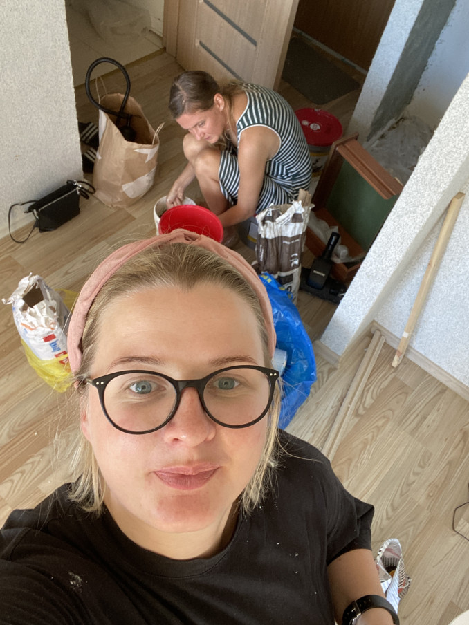 Giedrė: Kol kas neturėjome daug laiko atsipūsti, kadangi viešnagės Visagine buvo užpildytos sienų ir dušų kabinų griovimu, jų dažymu Viską darėme pačios, net ir balkoną pačios sugebėjome išbetonuoti, grindis sudėti. Mūsų gyvenimiškas CV tikrai prasiplėtė (šypteli).