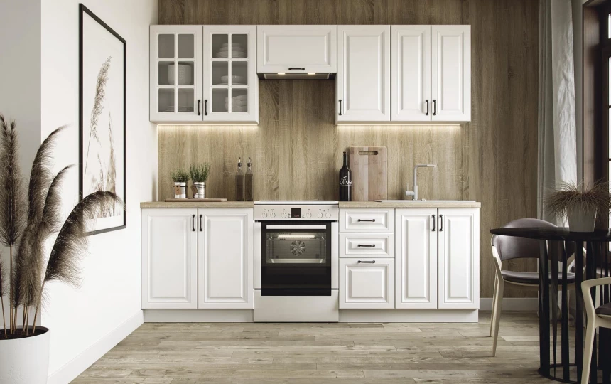 - Paprastumas. Tiems, kurie vertina nesenstantį klasikinės baltos spalvos virtuvės baldų žavesį, rekomenduojama rinktis švarių linijų ir formų spinteles bei stalviršius, pabrėžiančius baltai spalvai būdingą grakštumą. Šilumos ir jaukumo atmosferą sukuria iš medžio pagaminti virtuvės baldai.