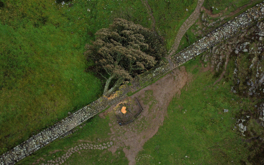 Šalia senovinės Hadriano sienos griuvėsių tarp dviejų kalvų Šiaurės Anglijoje augęs platanalapis klevas buvo populiarus nuotraukų motyvas. Pasaulinę šlovę jam pelnė 1991 m. filmo "Robinas Hudas - vagių karalius" scena. Šioje juostoje vaidmenis kūrė ir kino žvaigždės Kevinas Costneris bei Morganas Freemanas. Nupjautas medis nukrito ant ne mažiau garsios Hadriano sienos, kurią kadais pastatė romėnai, kad apsaugotų Britanijos provinciją nuo įsiveržimų iš šiaurės.
