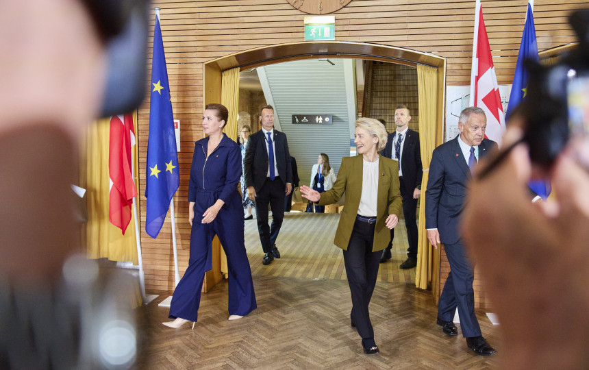 V. Zelenskis Orhuso mieste susitinka su M. Frederiksen ir Europos Komisijos pirmininke Ursula von der Leyen bei Europos Vadovų Tarybos pirmininku Antonio Costa.