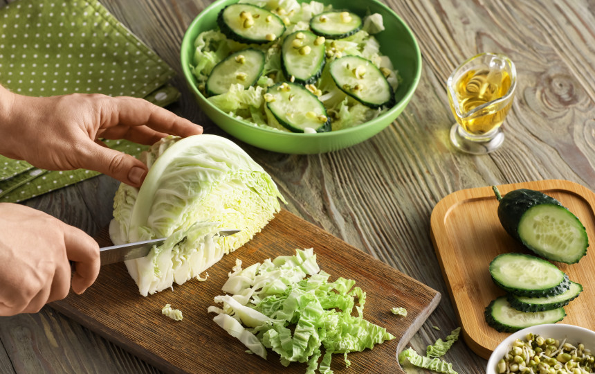 Vakarienė: kopūstų salotos su baltymais.