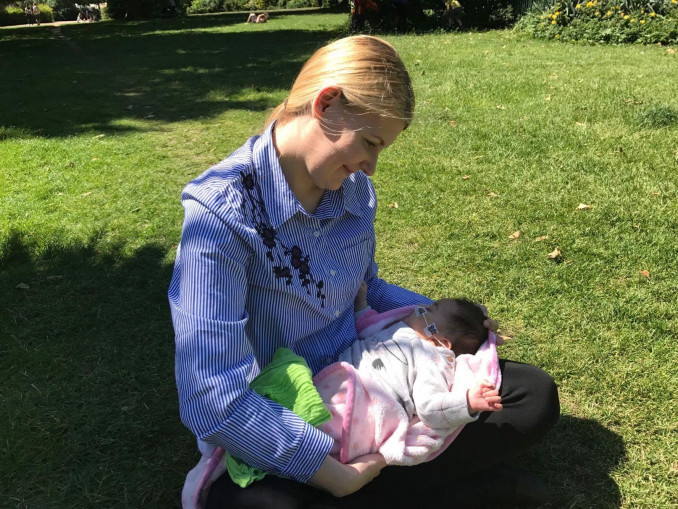 Anaja, kuriai kovą bus treji, diagnozuota hipoksinė išeminė encefalopatija, taip pat cerebrinis paralyžius ir epilepsija. Dukrytė negali sėdėti, vaikščioti ar kalbėti. Nors regėjimas nėra geras, bet ji mato žmones, daiktus. Kiek gerai mato, mes nežinome. Yra maitinama per gastrostomos vamzdelį. Dukrytei priežiūra reikalinga 24 valandas per parą. Esu mama-slaugytoja be medicininio išsilavinimo.