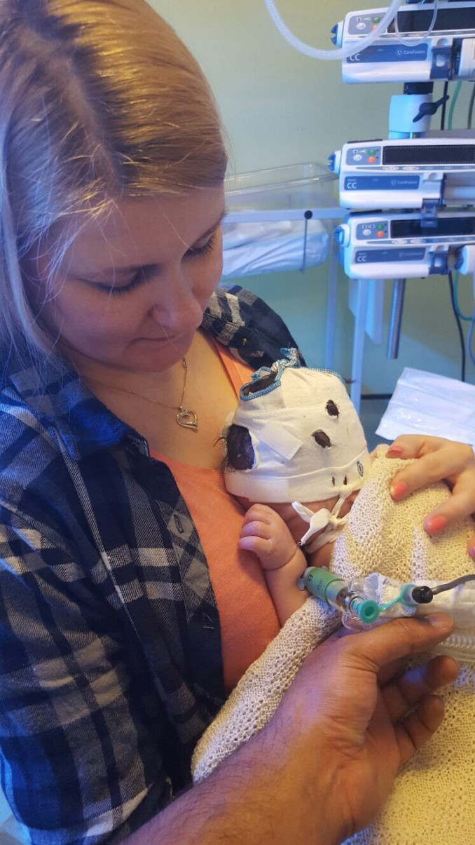 Tada sekė ilgos 7 savaitės ligoninėje. Pirmą kartą dukrytę apkabinau tik 6-ą dieną po gimdymo, bet, žinoma, tai nebuvo toks apkabinimas, apie kokį svajoja tėvai, nes prie dukrytės buvo prijungta galybė aparatų. Buvo baisu ko neatjungti. Septintą dieną ji atmerkė akytes. O pirmą kartą suverkė sulaukusi mėnesio. Tai buvo pati gražiausia muzika mūsų ausims. Būdami ligoninėje kasdien mokėmės naujų medicininių terminų, kaip maitinti per zondą, kada ir kokius suduoti vaistus. Buvo gera grįžti namo, bet tuo pačiu kaustė begalinė baimė, ar tikrai sugebėsime pasirūpinti savo vaikeliu.