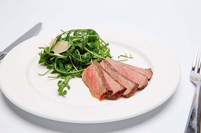 Ant grotelių iškepto kepsnio sultis H. Blumenthal'io komandos nariai naudoja salotoms gardinti. Joms reikės: nuplautų ir nusausintų gražgarsčių, parmezano drožlių, česnakais ir rozmarinais pagardinto alyvuogių aliejaus, citrinų sulčių, druskos, juodųjų pipirų ir ant grotelių keptos mėsos sulčių. Viską išmaišykite ir ragaukite su sultingu kepsniu.