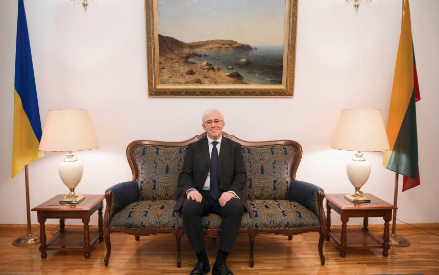 Ukrainos ambasada įsikūrusi gražiame kultūros paveldo pastate ramioje Teatro gatvėje Vilniuje. Čia, į kur atvyksta iš savo jaukių namų, ambasadoriaus kaskart laukia įtempta darbotvarkė – nuolat vykstantys susitikimai, priėmimai, posėdžiai, sprendžiami Ukrainai svarbūs įvairių sričių klausimai.