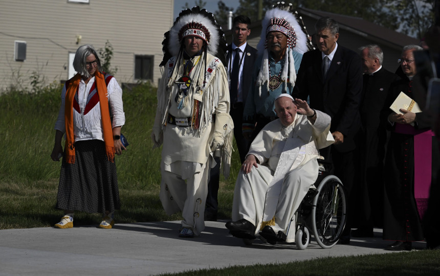Popiežius pastarąją savaitę viešėjo Kanadoje, kur susitiko vietos čiabuviais ir paprašė jų atleidimo už jų patirtą smurtą katalikiškose internatinėse mokyklose.