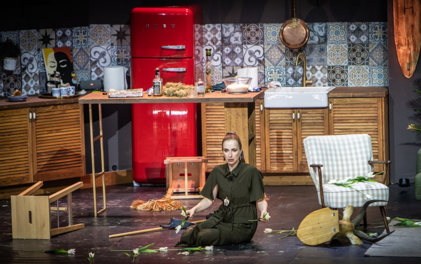 – Minime žinomas vietas, jas adaptuojame pagal miestus, kuriuose vaidiname. Pagal aktualijas pokalbiuose atsiranda ir žinomų pavardžių. Net scenografijoje pro langą matosi lietuviškas vaizdas. Manto Stonkaus vaidinamo advokato telefoninių pokalbių temos yra susijusios Lietuva. Mano personažas turi net monologą apie mūsų šalį.