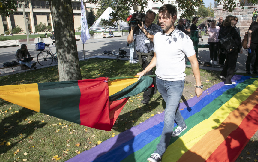 Eitynėms pasiekus Katedros aikštę, joje susitiko eitynėse dalyvavęs Seimo narys T. V. Raskevičius bei A. Kandrotas-Celofanas. Vyrams atsistojus šalia vienas kito, parlamentaras staiga pabučiavo A. Kandrotą-Celofaną.