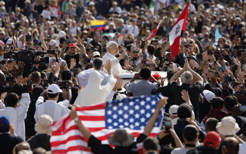 Žiūrovai jį sutiko džiaugsmo šūkiais ir bėgdami iš paskos stengėsi bent akies krašteliu pamatyti naujai išrinktą pontifiką, kuris Romos katalikų bažnyčios vadovu tapo po to, kai balandžio 21 d. mirė popiežius Pranciškus.