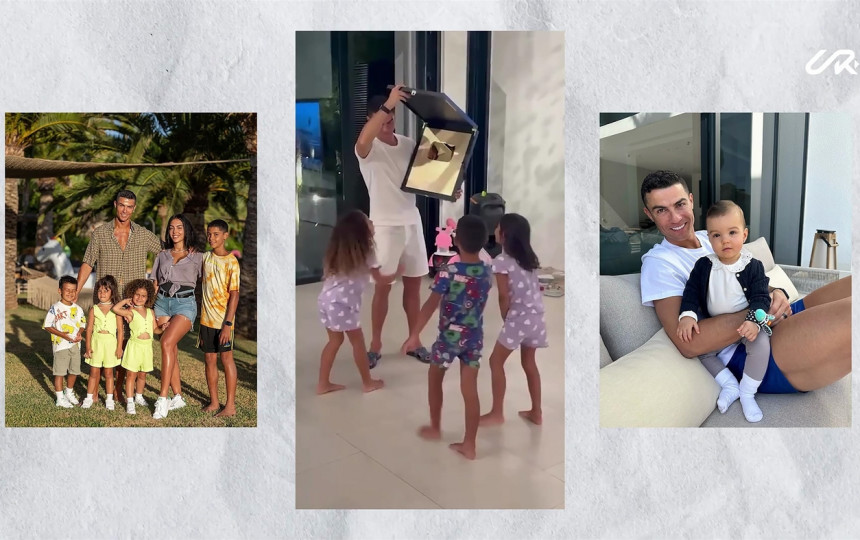 Pora kartu dukras: Alaną Martiną (gimė 2017 m.) ir Bellą Esmeraldą (gimė 2022 m., kartu su praradimu – sūnumi Ángel) Georgina taip pat rūpinasi Ronaldo vaikais iš ankstesnių santykių: Cristiano Jr., Eva ir Matteo.