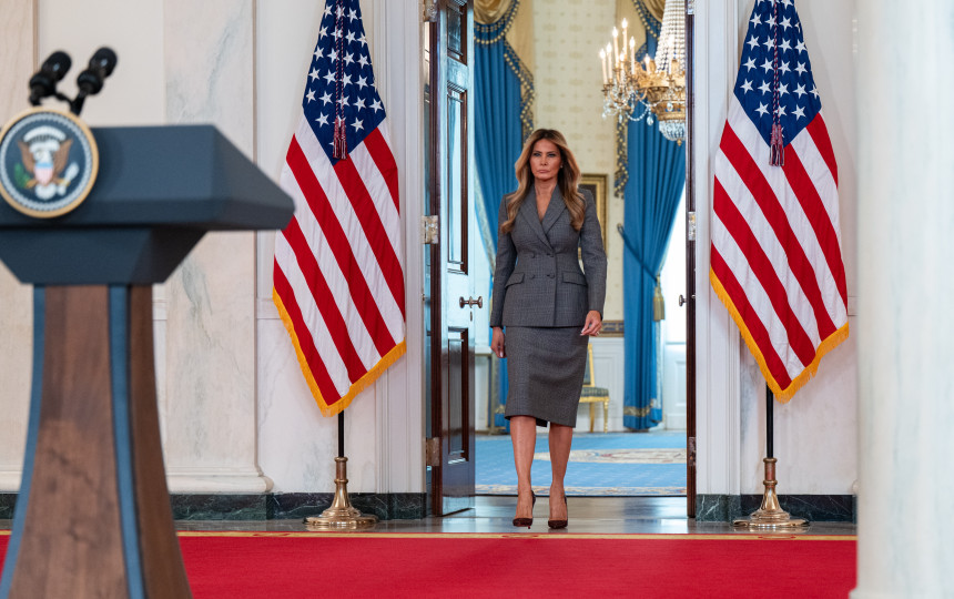 Jos biuras trečiadienį, balandžio 8 d., pranešė, kad pirmoji ponia ketina „paskelbti pareiškimą“ Baltuosiuose rūmuose ketvirtadienį 14.30 val. Laiške apie jos kalbos temą neužsiminta.