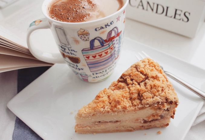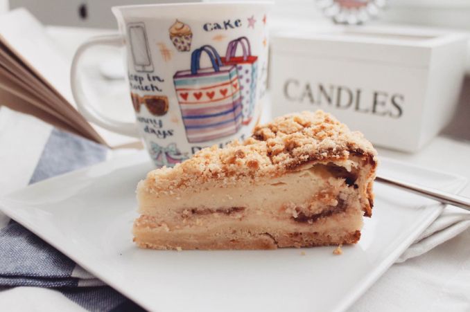 * Į nemažą kepimo formą (naudojau 26cm skersmens) suberiame pusę tešlos trupinių, juos tolygiai paskirstome dugne. Ant viršaus pilame pusę varškės masės, uždedame džemo, supilame pasilikusią varškę. Likusius tešlos trupinius užbarstome ant viršaus.