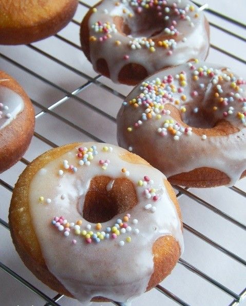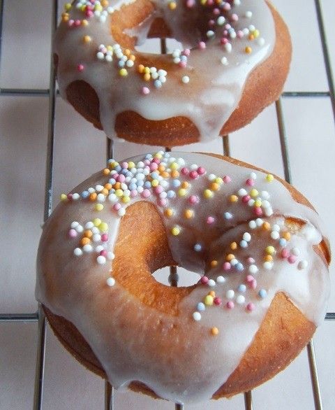 * Glaistui sumaišykite cukraus pudrą su nedideliu kiekiu citrinos sulčių. Apliekite spurgas ir apibarstykite pabarstukais.