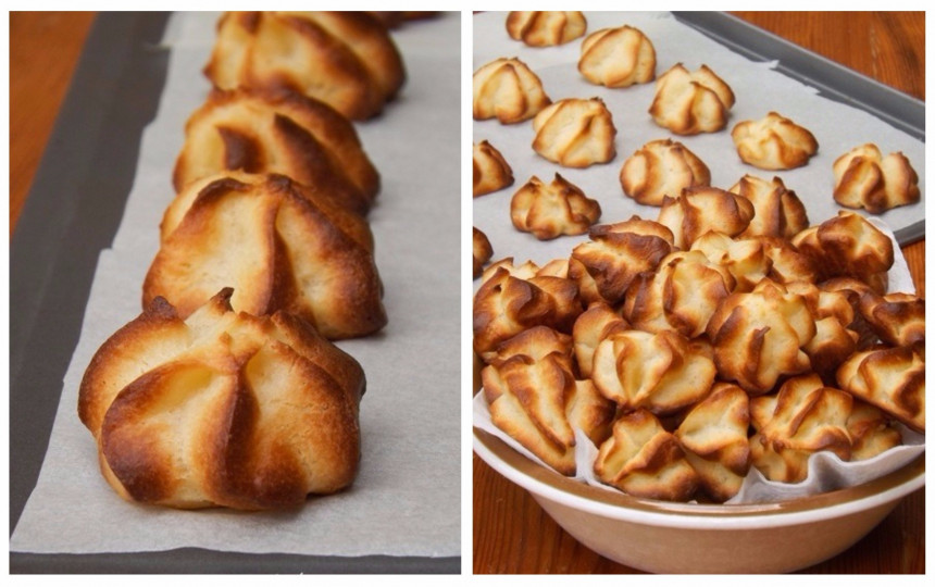 Iškeptus sausainius atvėsinkite. Pradžioje sausainiai iš išorės bus šiek tiek traškūs, viduje minkšti, drėgni, tuščiaviduriai. Pastovėję suminkštėja visiškai.