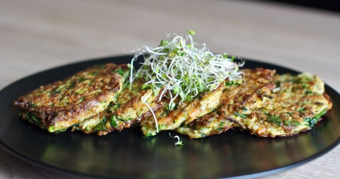 * Keptuvėje įkaitinkite šlakelį aliejaus, dėkite masę ir kepkite blynelius tol, kol gražiai apskrus iš abiejų pusių.