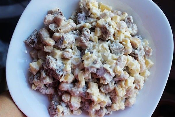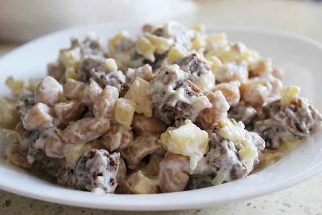 Puiki mišrainė! Jei jau susigundysite ir nuspręsite gaminti šią mišrainę, tai iškart duodu patarimą: gaminkite iš dvigubos normos, nes paskui galite susipešti su ragautojais… Mes nesusipešėm, bet priekaišto žvilgsnių buvo …kodėl paskutinis šaukštas atiteko ne man?!