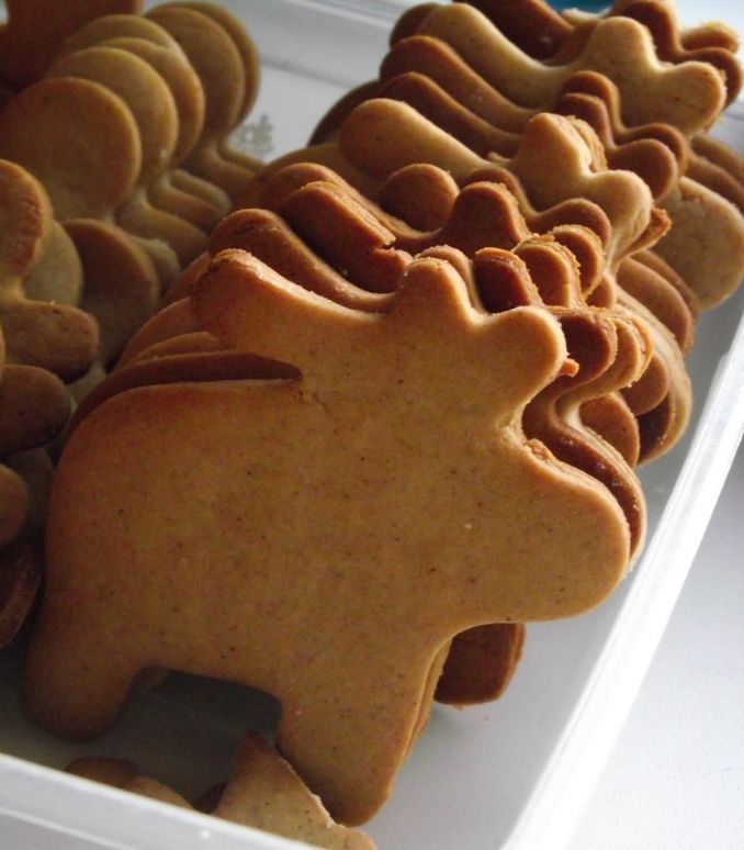 * Tešlą dar kartą išminkykite, kol lengvai minkysis. Ant miltais pabarstyto darbastalio plonai iškočiokite tešlą, išpjaukite norimos formos sausainius. Sudėkite ant kepimo popieriumi ištiestos skardos ir kepkite 8-10 minučių orkaitėje 180 °C.